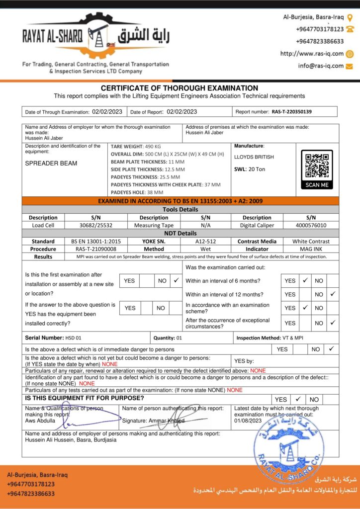 LIFTING INSPECTION