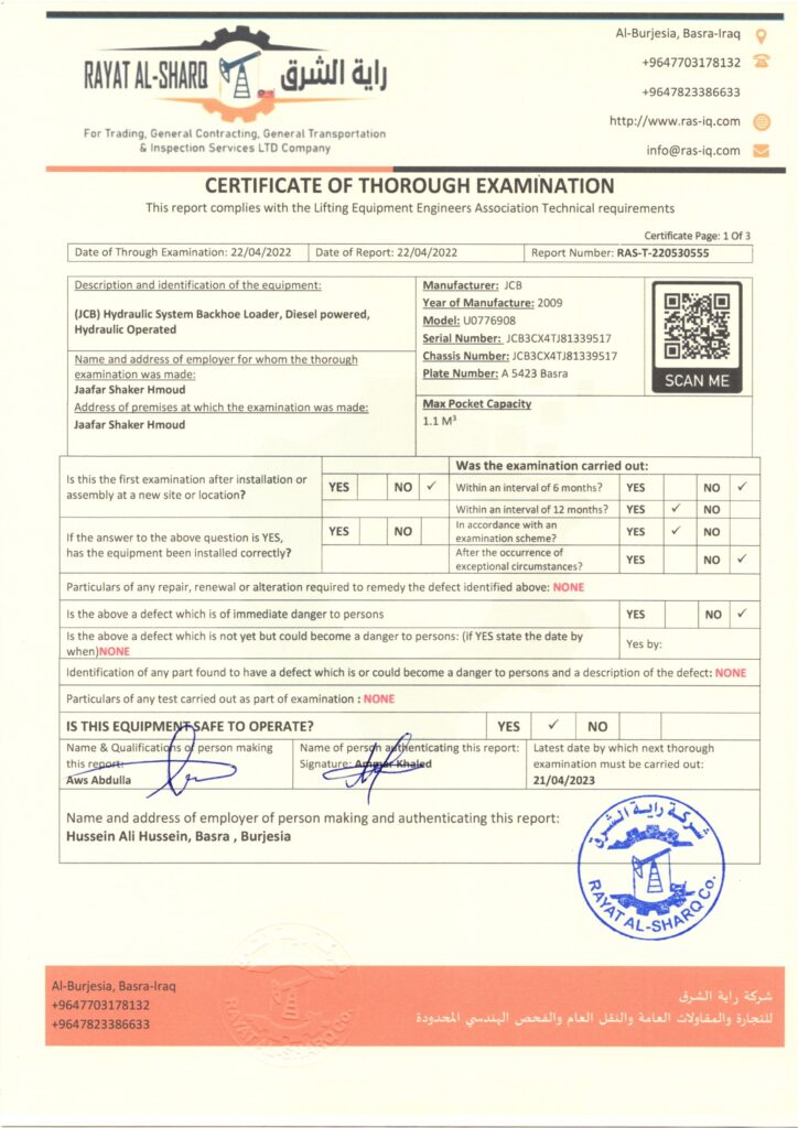 LIFTING INSPECTION