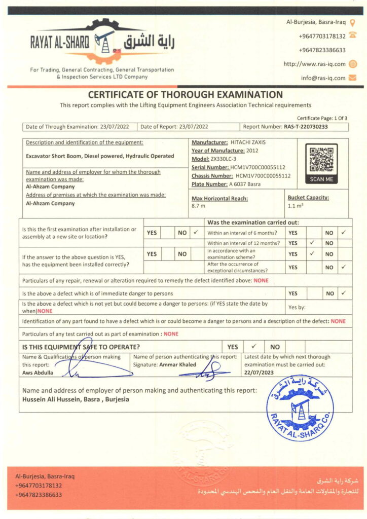 LIFTING INSPECTION