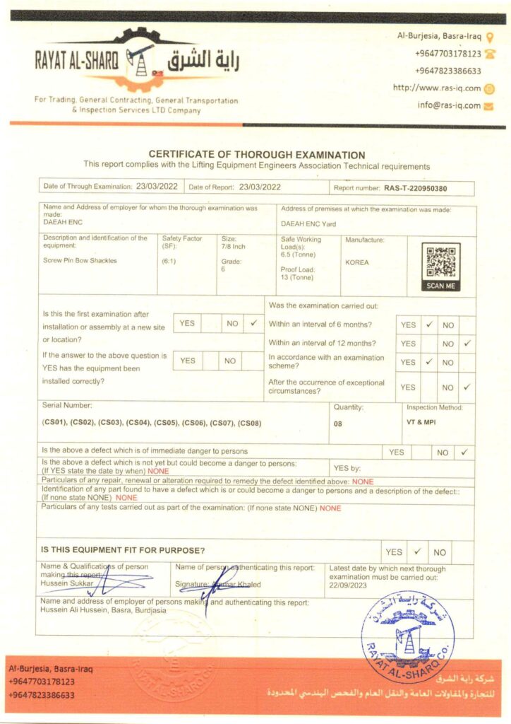 LIFTING INSPECTION