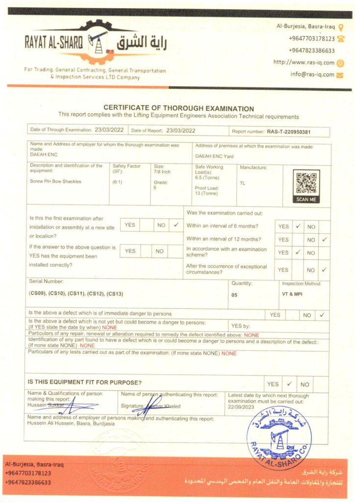 LIFTING INSPECTION