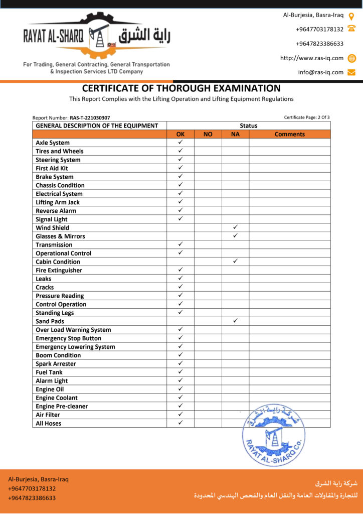 LIFTING INSPECTION
