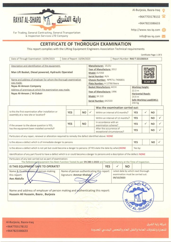 LIFTING INSPECTION