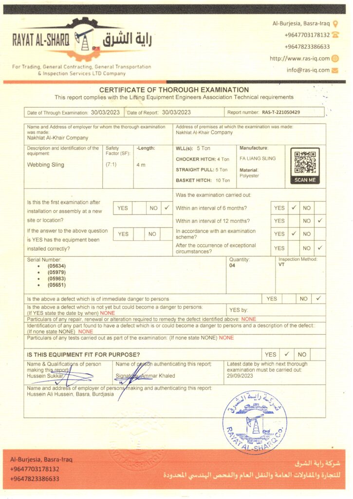 LIFTING INSPECTION