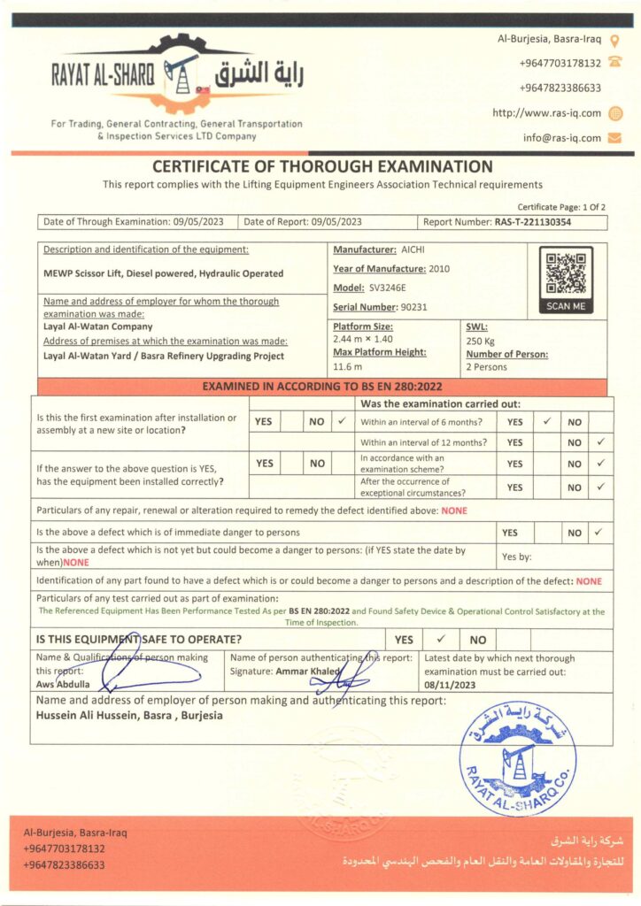 LIFTING INSPECTION