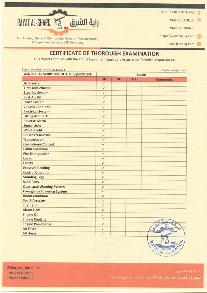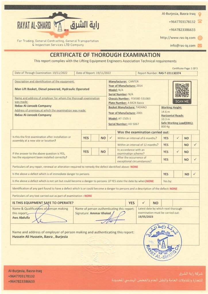 LIFTING INSPECTION