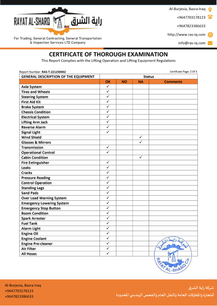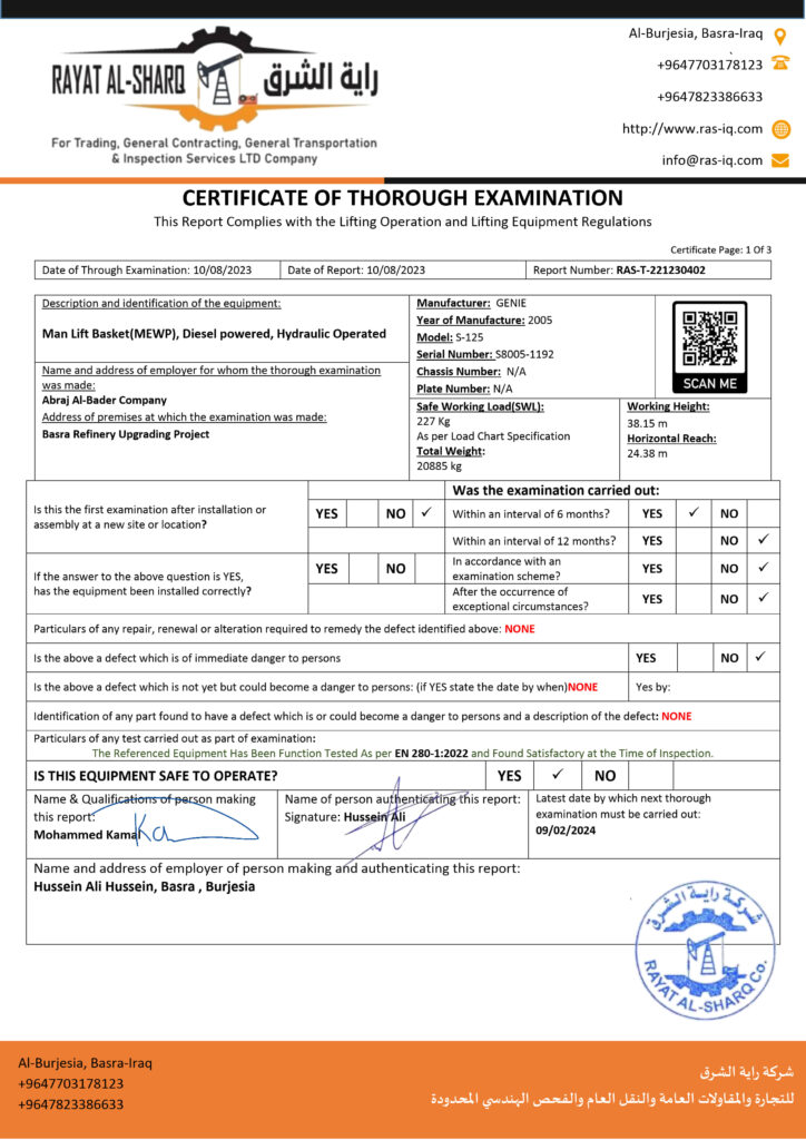 LIFTING INSPECTION