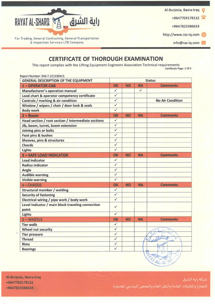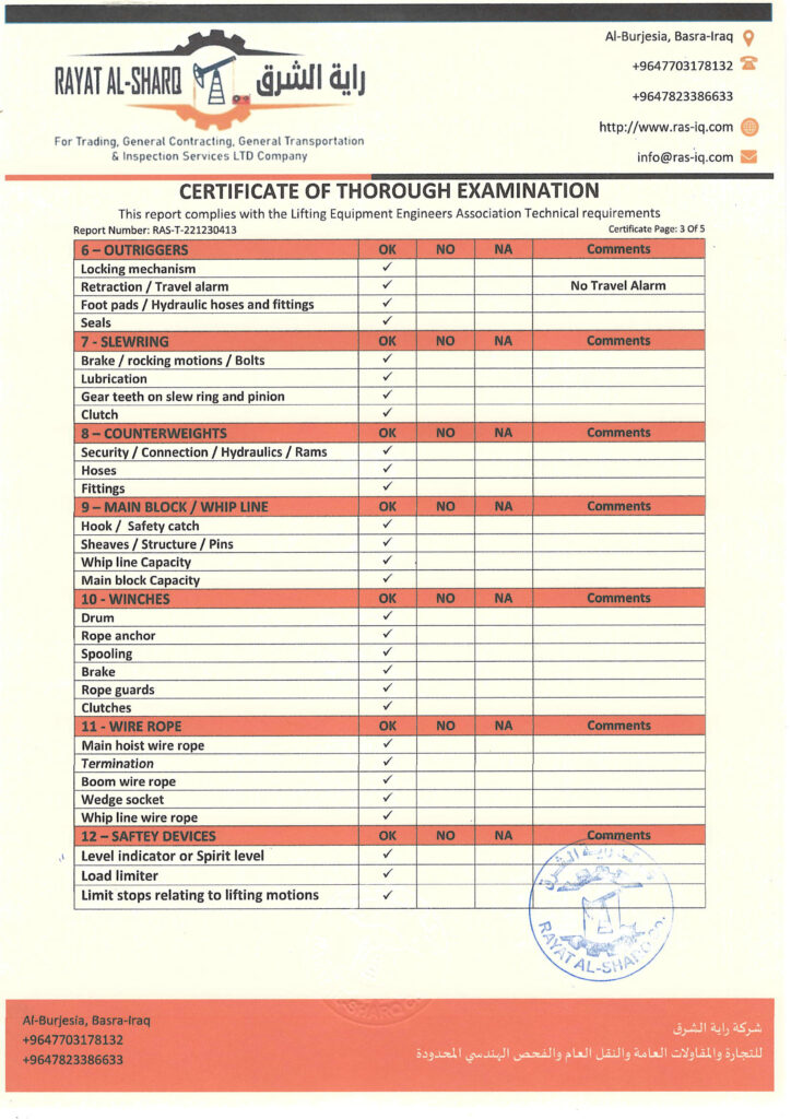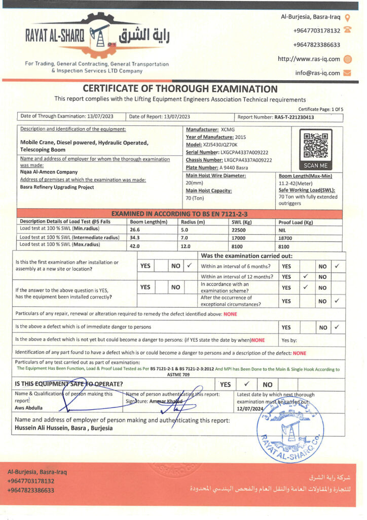 LIFTING INSPECTION