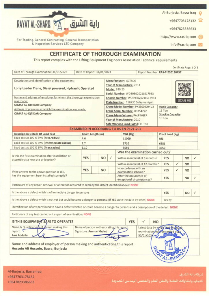 LIFTING INSPECTION