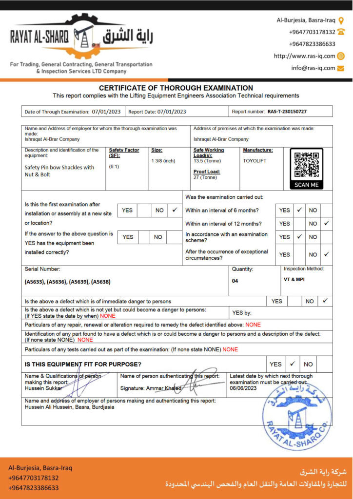 LIFTING INSPECTION
