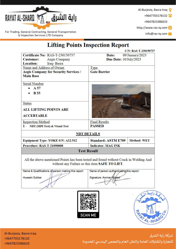 LIFTING INSPECTION