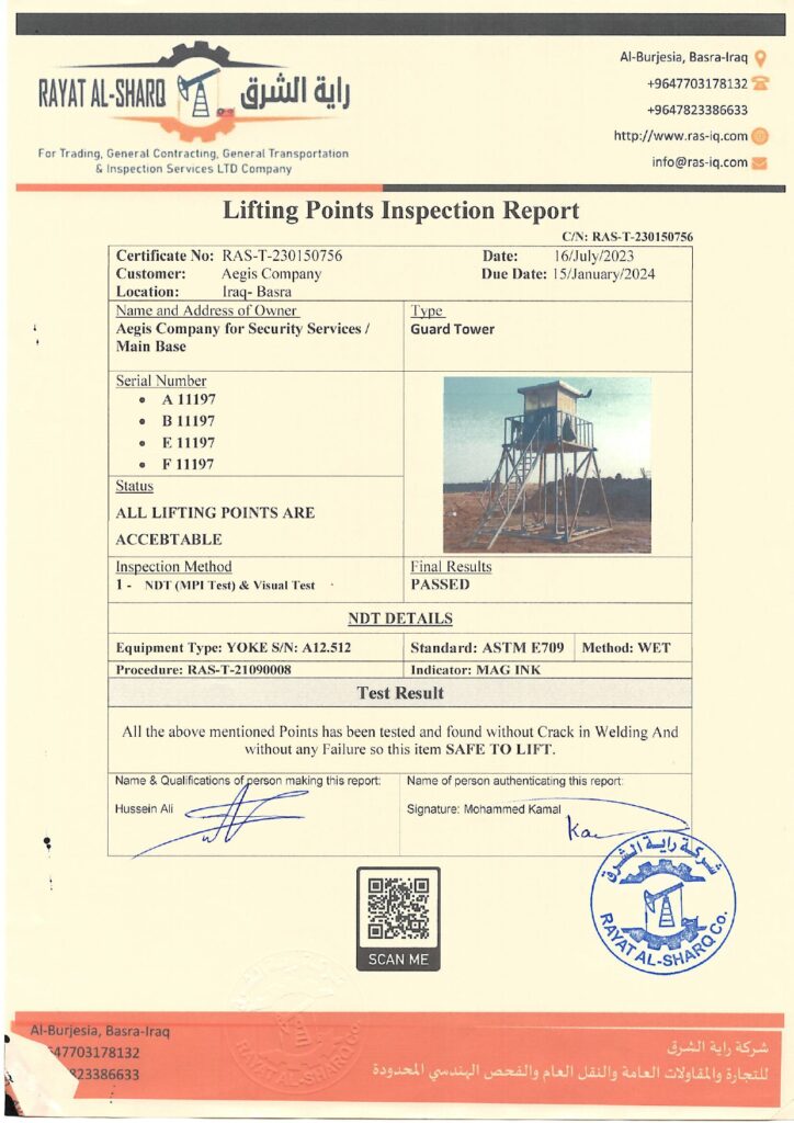 LIFTING INSPECTION