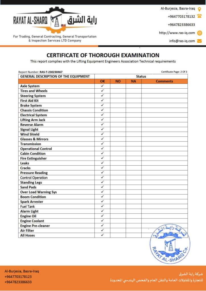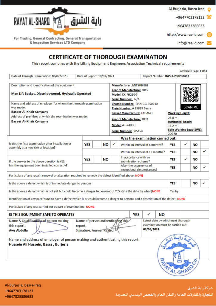 LIFTING INSPECTION