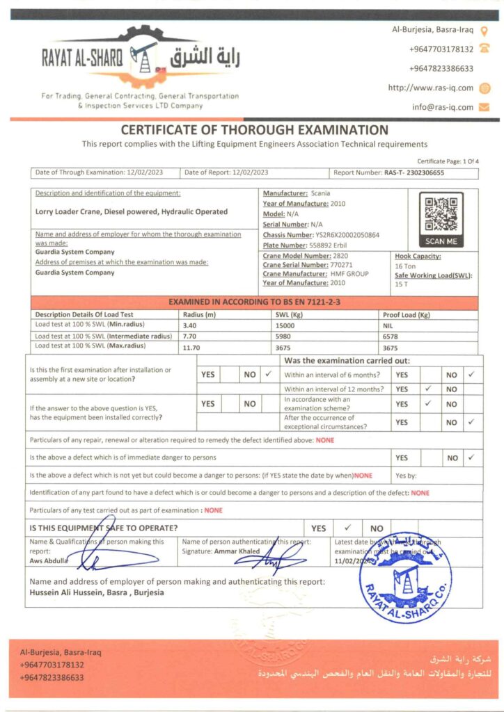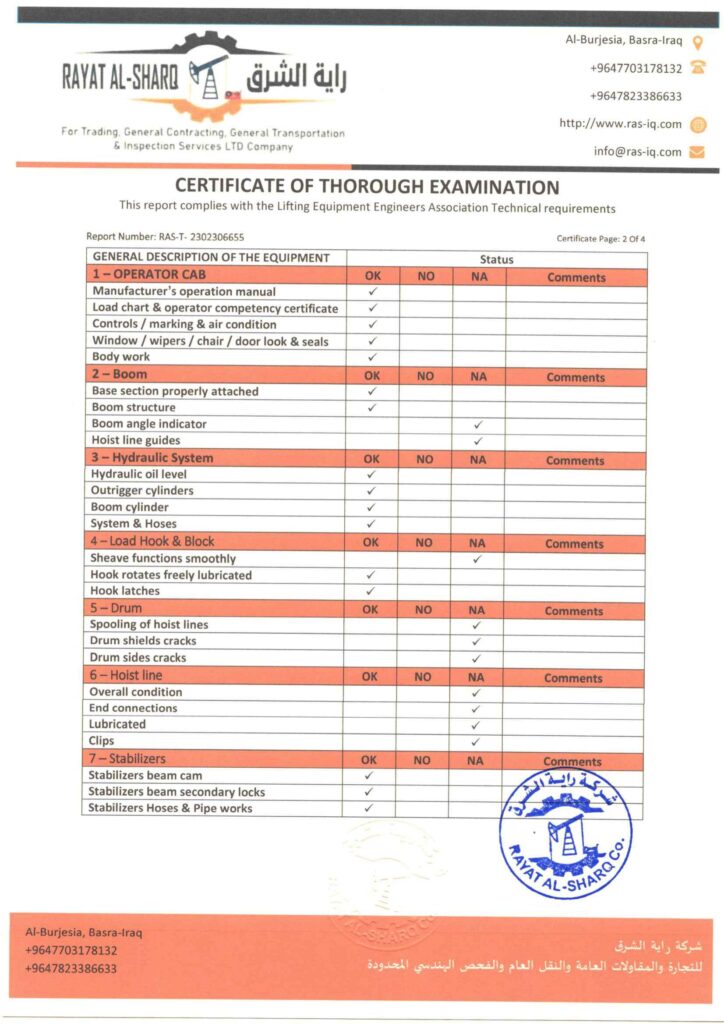 LIFTING INSPECTION