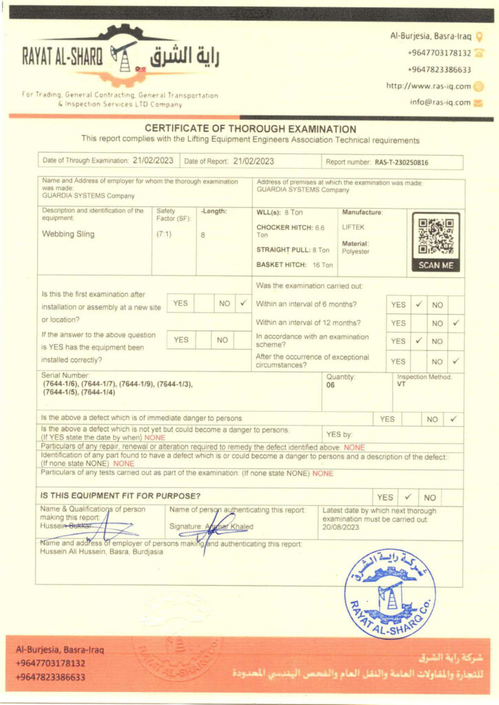 LIFTING INSPECTION