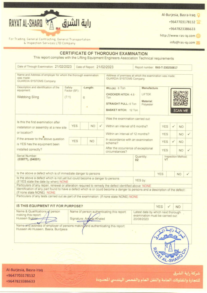LIFTING INSPECTION