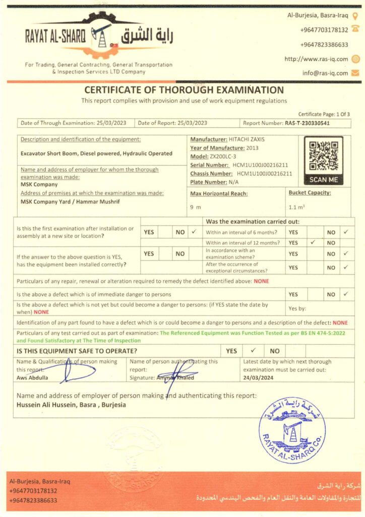 LIFTING INSPECTION