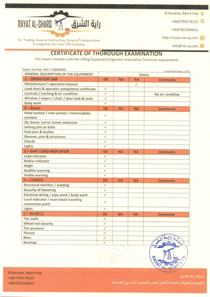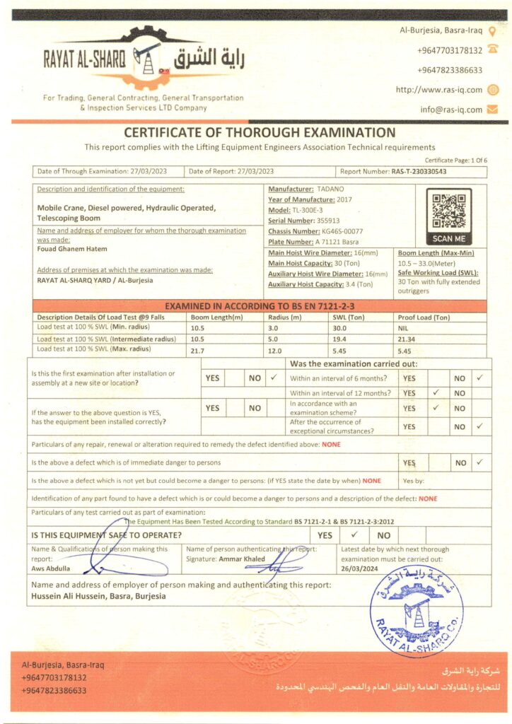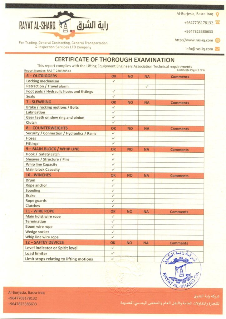 LIFTING INSPECTION