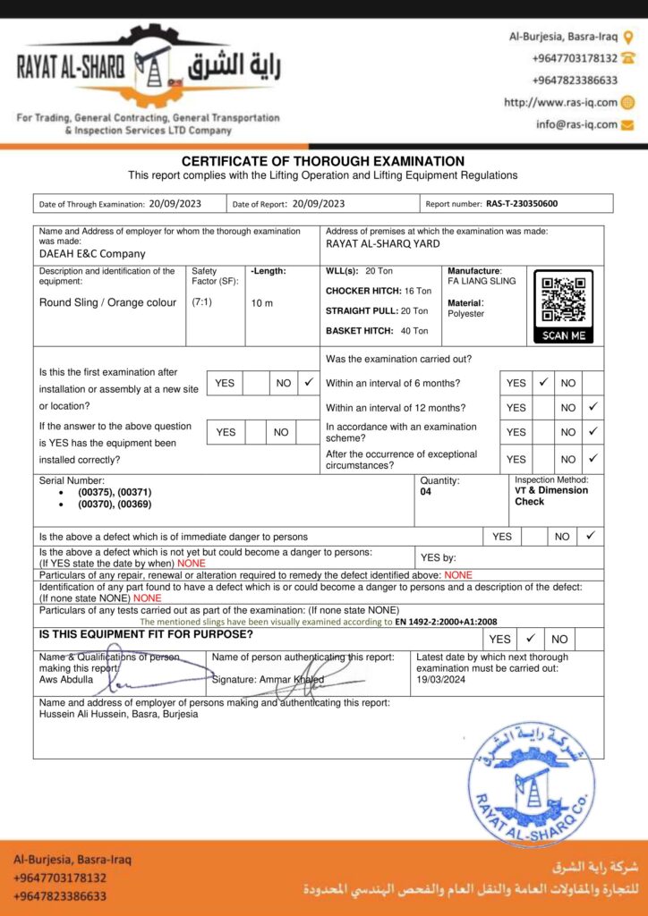 LIFTING INSPECTION