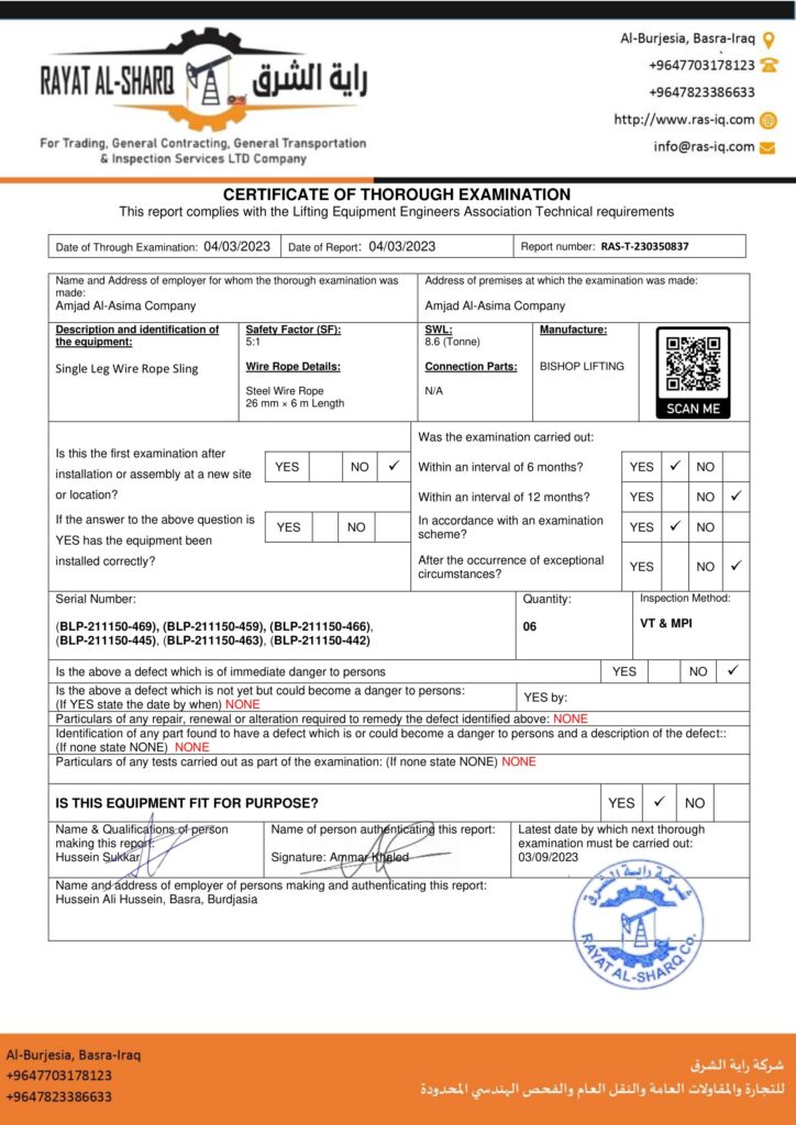 LIFTING INSPECTION