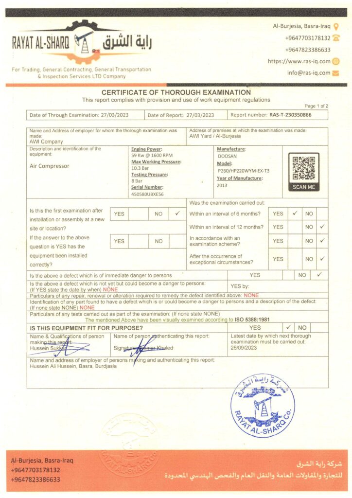 LIFTING INSPECTION