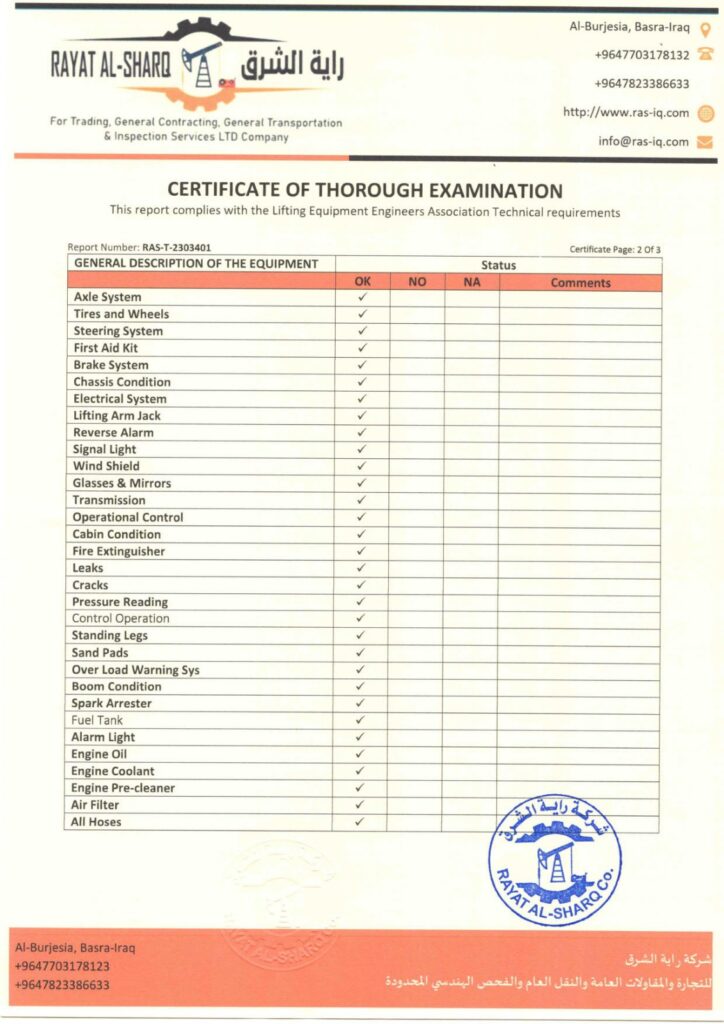 LIFTING INSPECTION