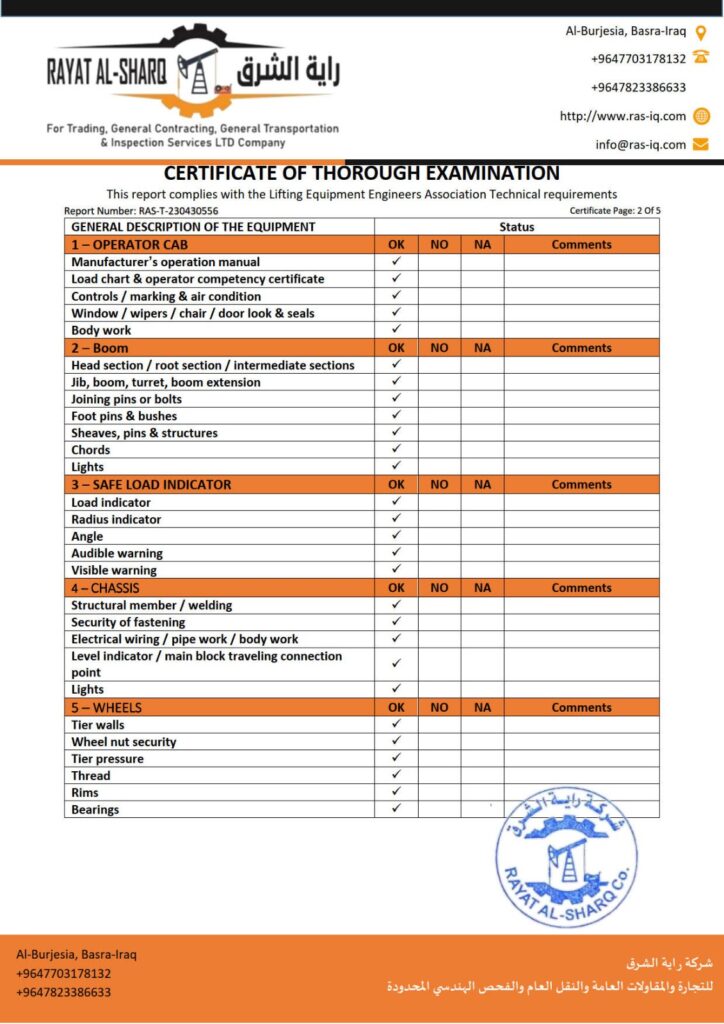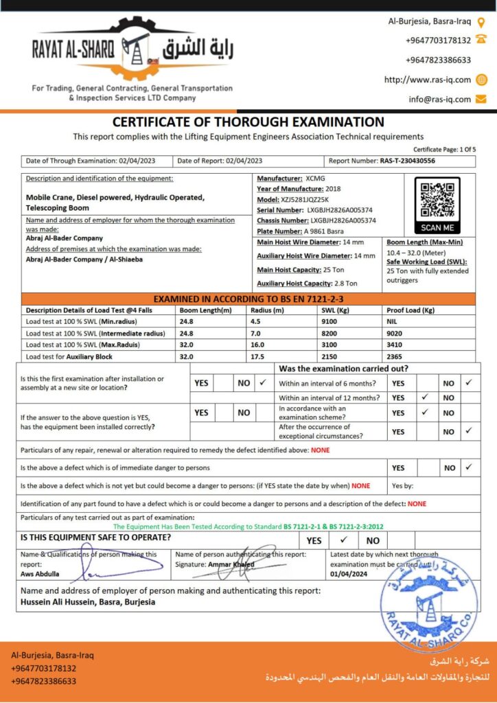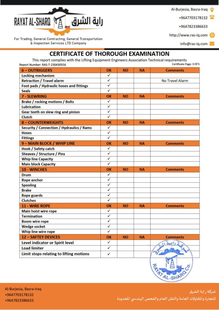 LIFTING INSPECTION