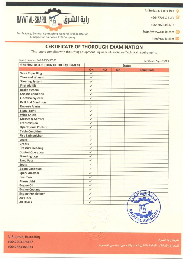 LIFTING INSPECTION