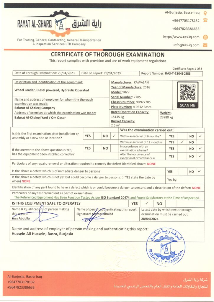 LIFTING INSPECTION