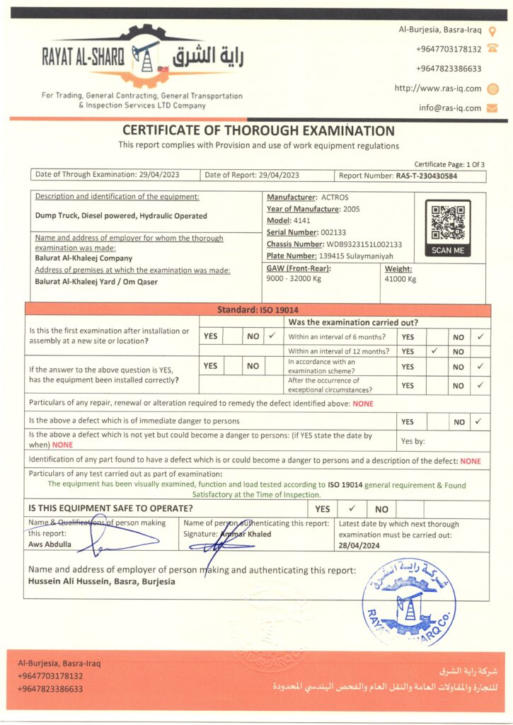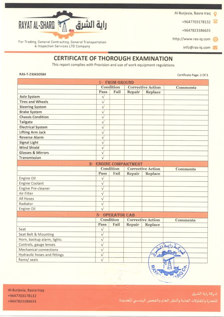 LIFTING INSPECTION
