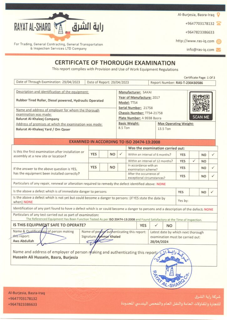 LIFTING INSPECTION