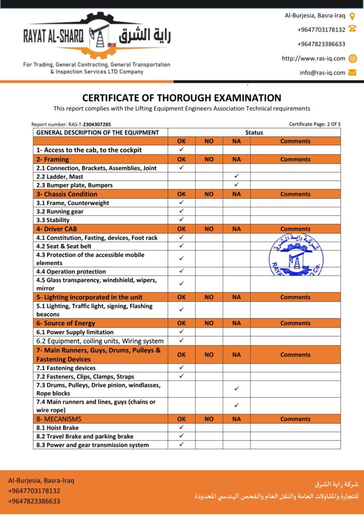 LIFTING INSPECTION