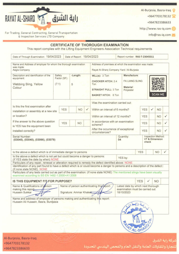 LIFTING INSPECTION