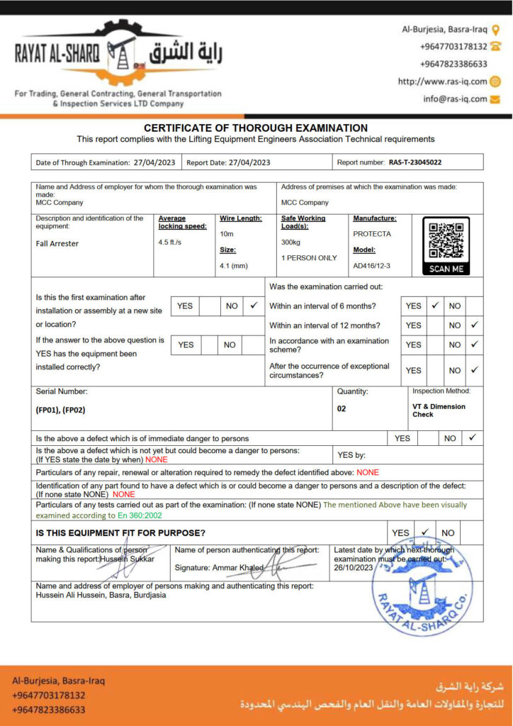 LIFTING INSPECTION