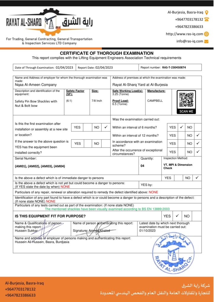 LIFTING INSPECTION