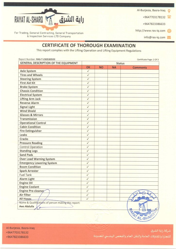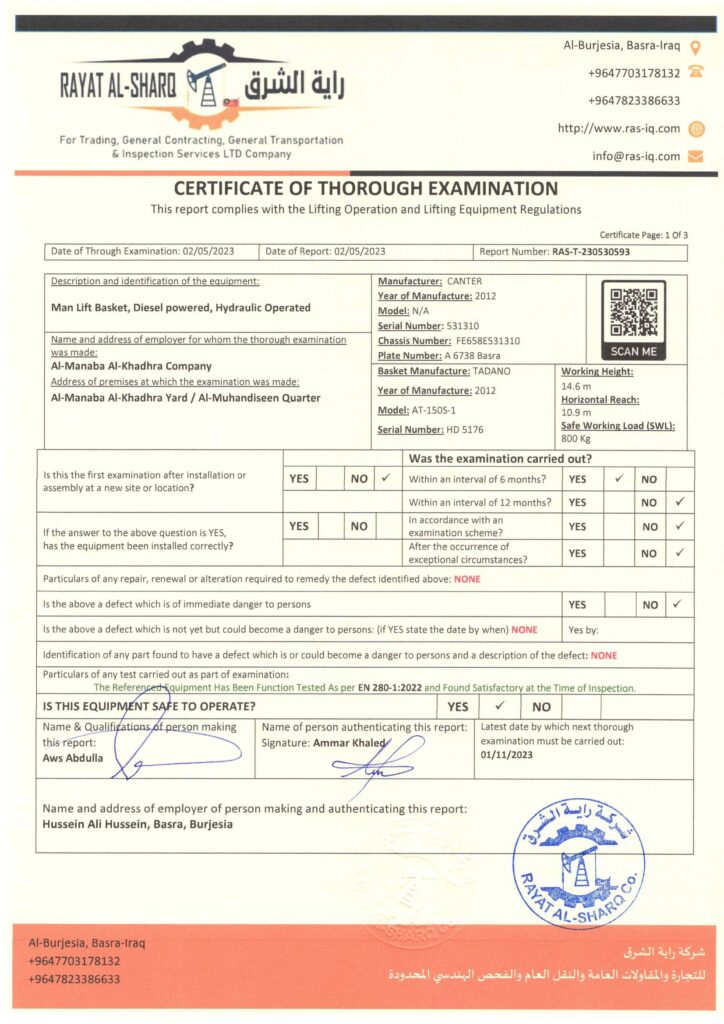 LIFTING INSPECTION