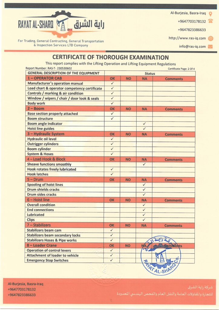 LIFTING INSPECTION