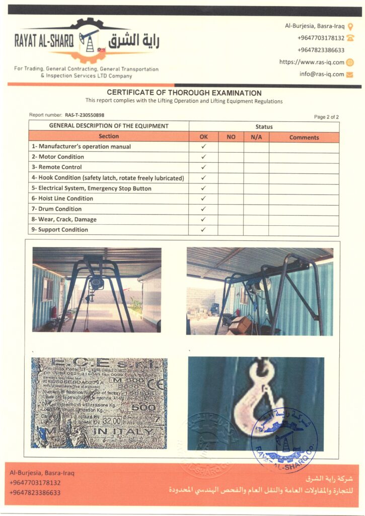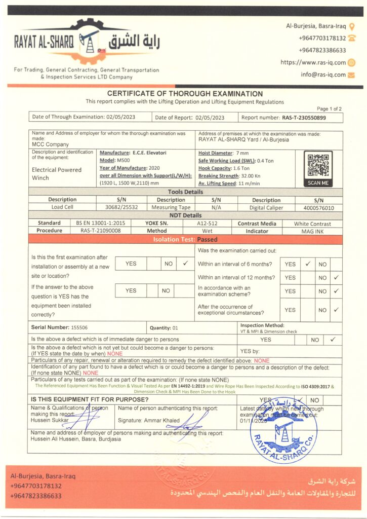 LIFTING INSPECTION