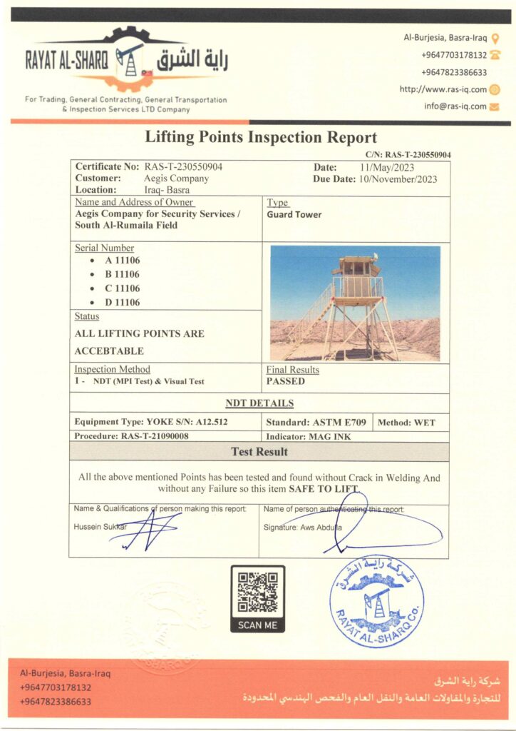 LIFTING INSPECTION