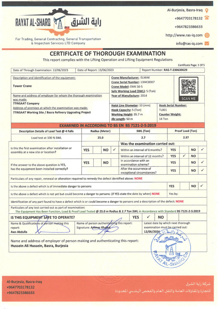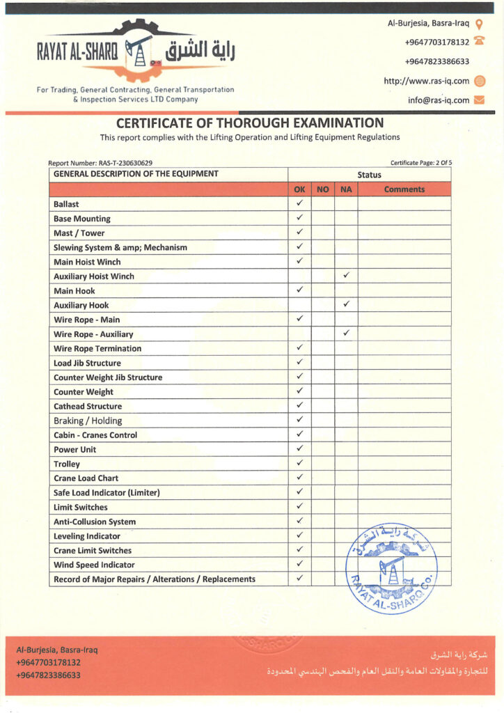 LIFTING INSPECTION