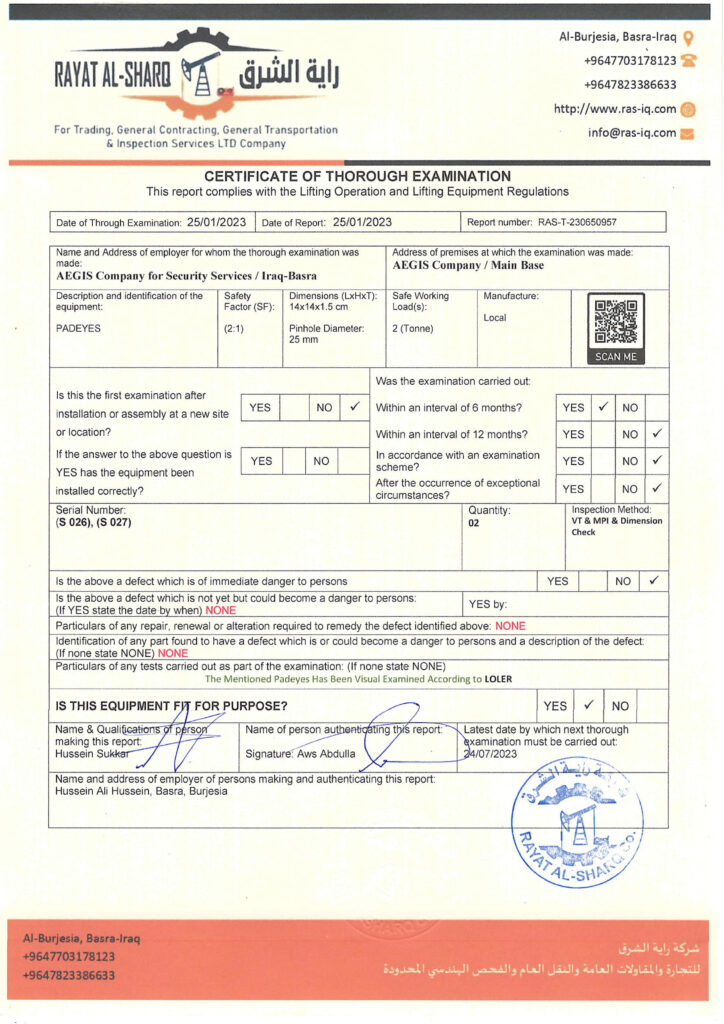 LIFTING INSPECTION