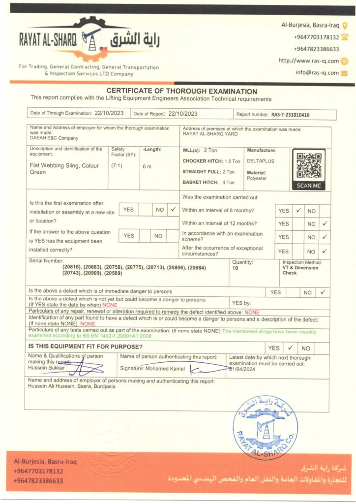 LIFTING INSPECTION