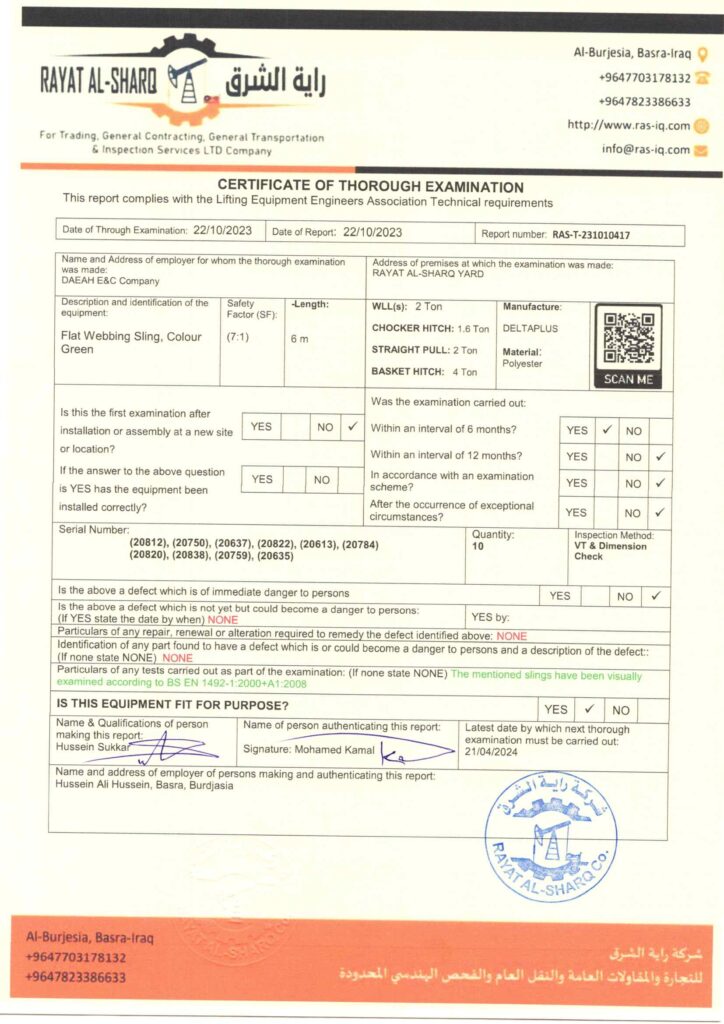 LIFTING INSPECTION