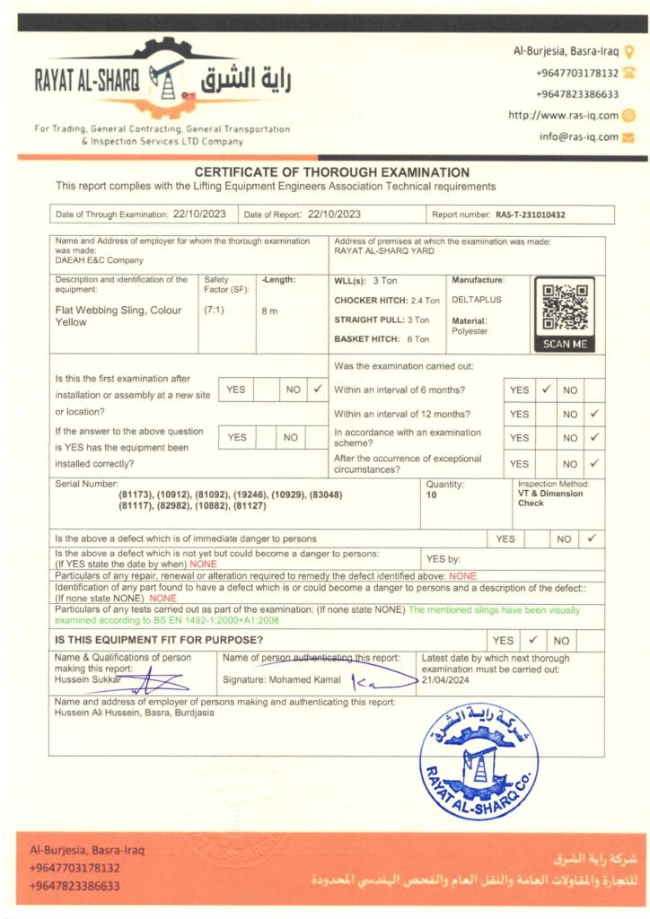 LIFTING INSPECTION