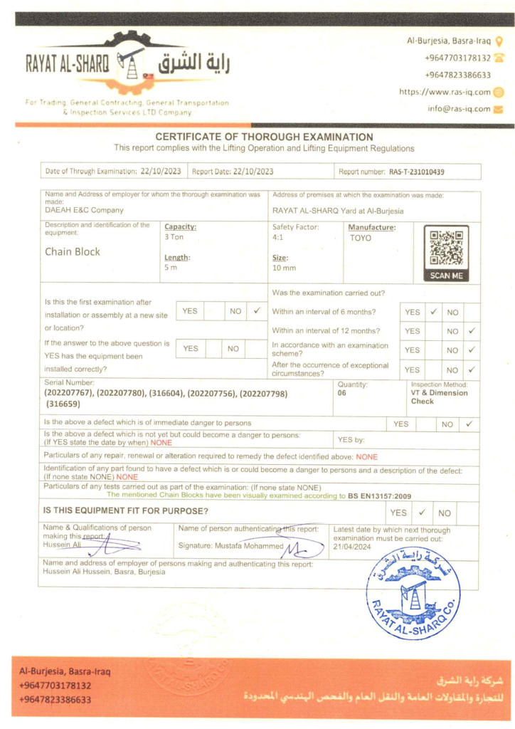 LIFTING INSPECTION